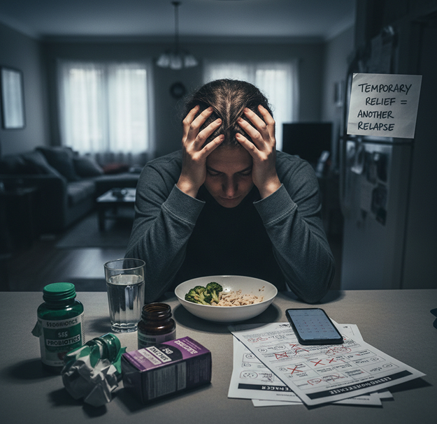 You still end up with stabbing cramps, unpredictable bowel reactions, and bloating that makes your clothes feel a size too small.